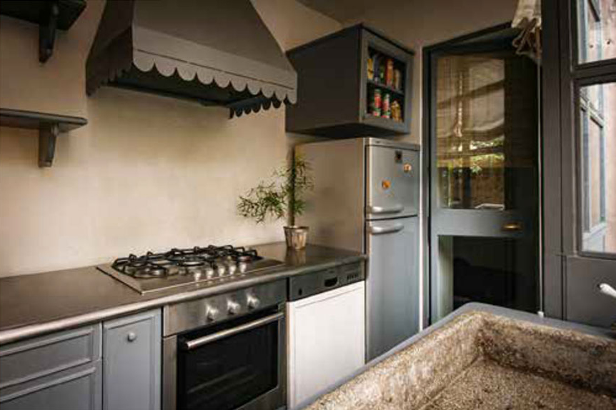 La Cucina è stata ricavata in un angolo del terrazzo e ideata come una vecchia serra inglese che si a accia direttamente sull’ampio terrazzo.