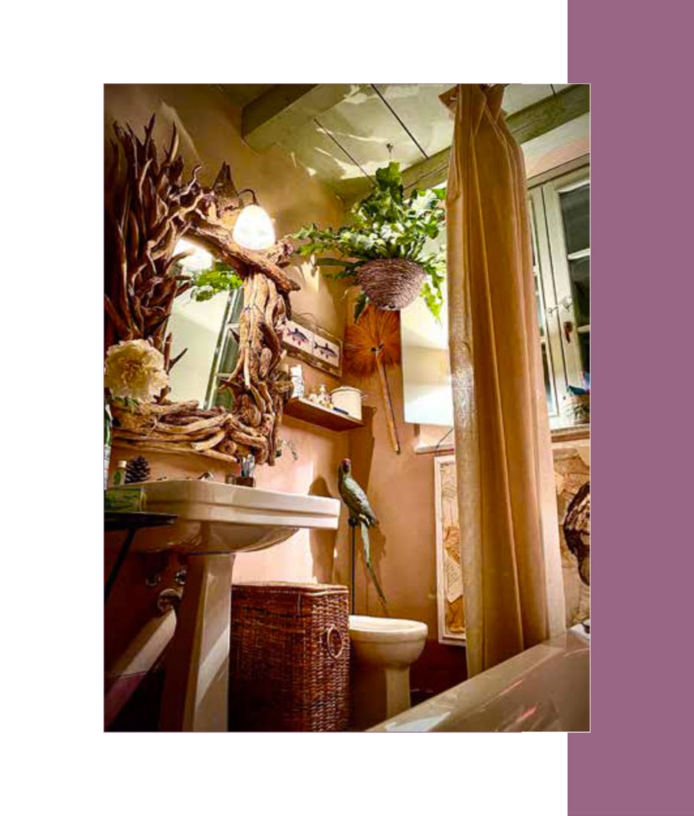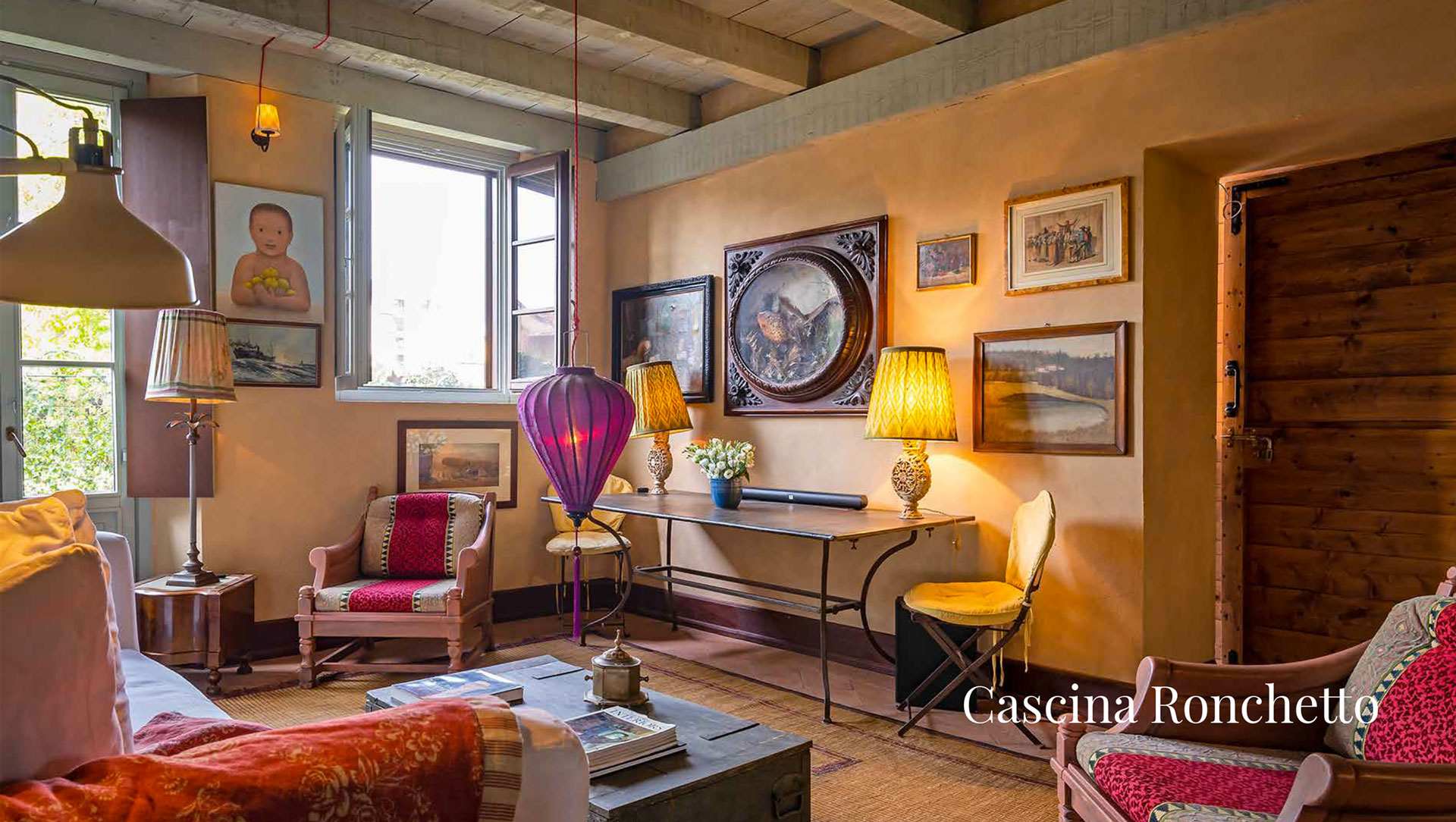 Cascina Ronchetto è il mio pied-à-terre Milanese che io definisco la mia amata GREEN ZONE. Mai avrei pensato di vivere fuori dal centro e invece in questo piccolo buco ricavato da una cascina rinascimentale del 1400 in estremita del Naviglio, mi ha affascinato fin dal primo momento. L’appartamento, nasce come un ex stalla, l’ambiente non grandissimo, circa 60mq, è piccolo ma ben calibrato e vanta di un enorme portico, dove diventa estremamente intrigante giocarselo con gli arredi tra Estate e Inverno.,. Gli arredi scelti sono un po’ il racconto della mia vita di ieri e di oggi, pezzi presi un po’ dappertutto, un Mix Match ben assortito e di forte carattere. Per adattare i miei arredi, ho dovuto azzardare sui colori e creare le giuste nuances, giocando su tonalità diverse tra verdi, viola e rosa antico, ma senza mai trlasciare la natura del contesto in cui mi trovavo. L’appartamento ha di non che un tocco Orientale, un incontro tra Asia ed Estremo oriente in una Milano un po’ defilata ma assai fascinosa.