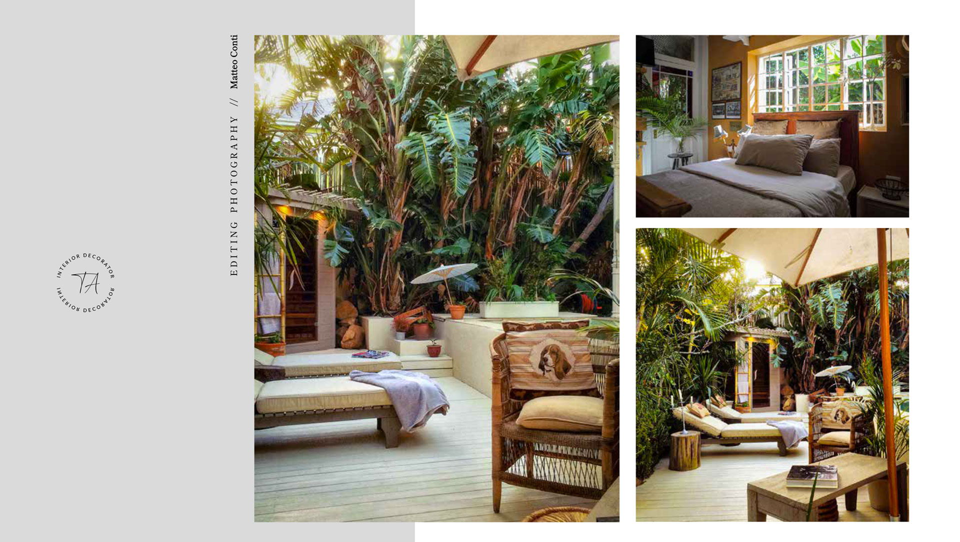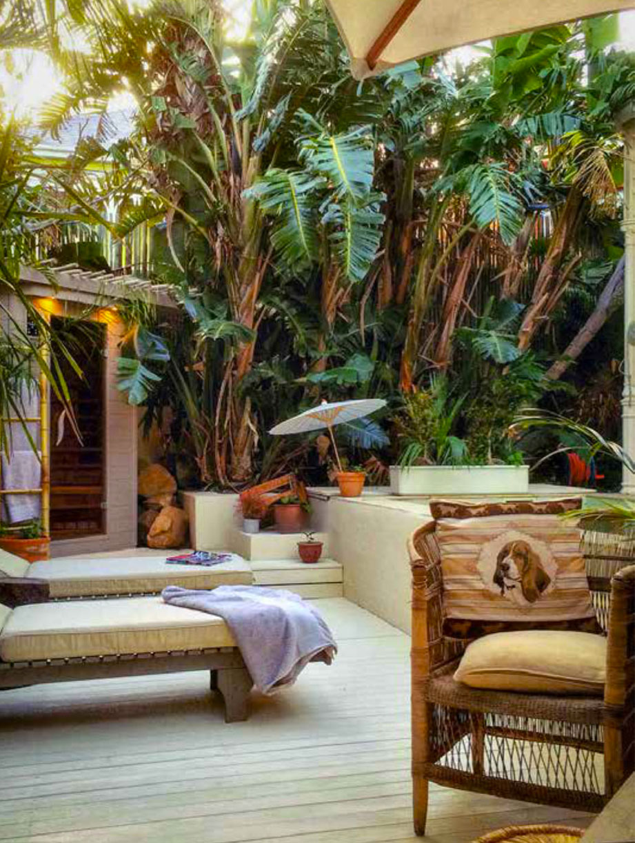 La villa è stata pensata con quattro en-suite bathroom e una parte comune esterna con una piscina munita di sauna in un giardino dove grandi piante di banani fanno da padrone.