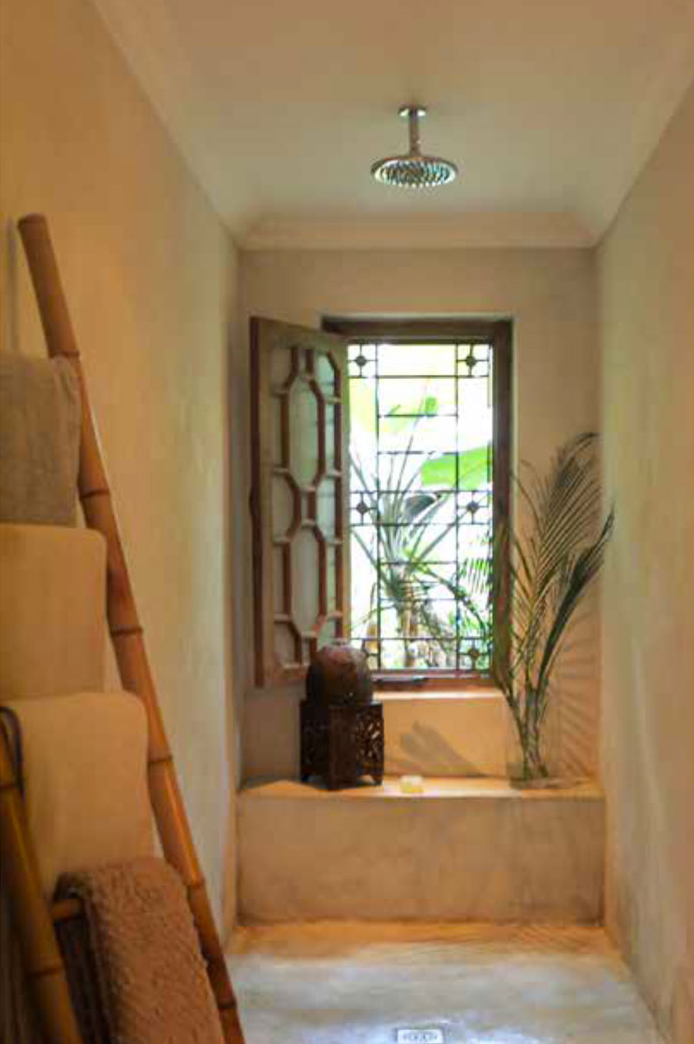 In uno dei bagni è stato ripreso lo stile arabaggiante tipico degli Hammam Marocchini, mentre in un altro si è puntato su una decorazione floreale dipinta a mano con diverse stesure di colore e tonalità di verde e oro.